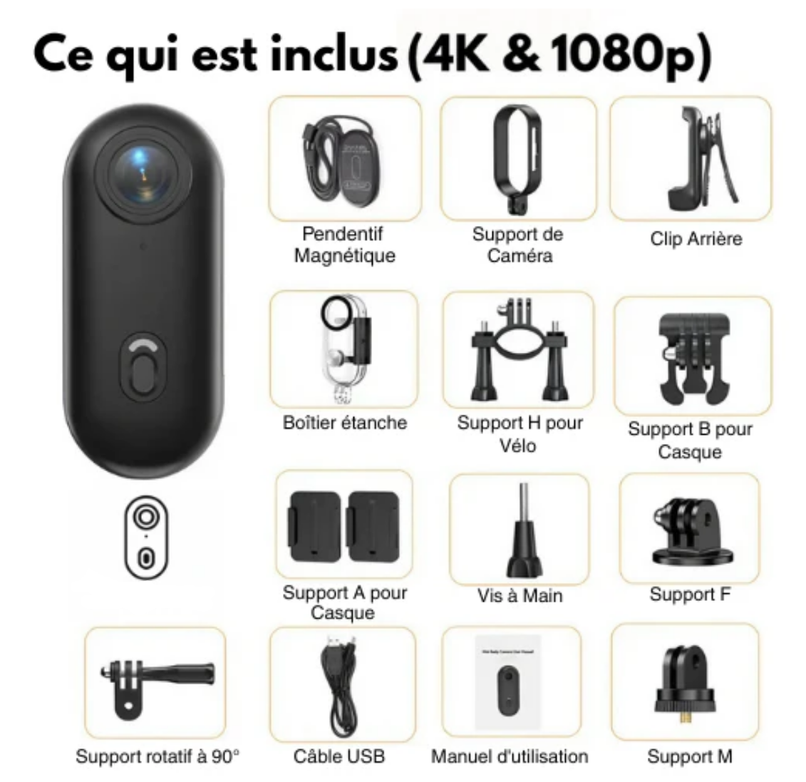 - Enregistrement mains libres en libres en 4 K UHD (3840x2160) ou FHD 1080p selon la version choisie